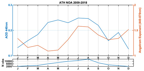 Data from the AERONET station ATHENS-NOA have been used for the period May 2008–September 2018. The instrument is located at the site described in the previous paragraph, and the horizon view is clear at a 360° viewing angle.