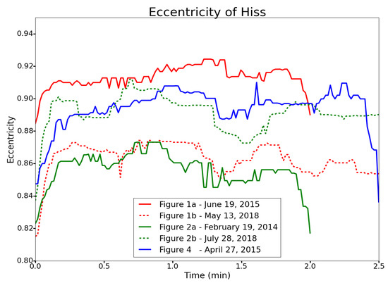 Figure 4. The eccentricity curve shown in blue is for the hiss shown in