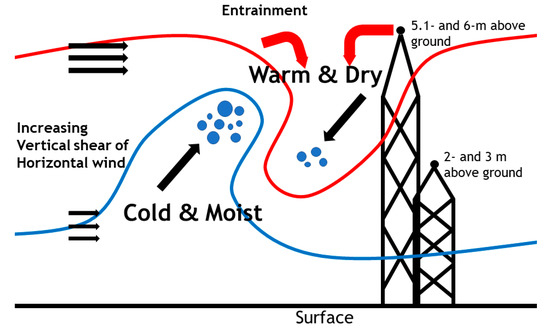 - Román-Cascón, C.; Yagüe, C.; Mahrt, L.; Sastre, M.; Steeneveld, G.-J.; Pardyjak, E.; van de Boer, A.; Hartogensis, O. Interactions among drainage flows, gravity waves and turbulence: A BLLAST case study. Atmos. Chem. Phys. 2015, 15, 9031–9047. [Google Scholar]