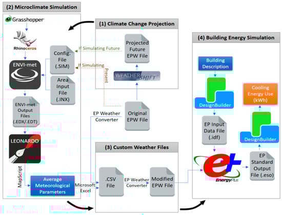 - Bueno, B.; Nakano, A.; Norford, L.; Reinhart, C. Urban Weather Generator—A Novel Workflow for Integrating Urban Heat Island Effect within Urban Design Process. Available online: http://www.ibpsa.org/proceedings/BS2015/p2909.pdf (accessed on 25 February 2020).