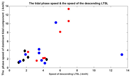The tidal phase speed versus the speed of the descending LTSL (“−km/h”: negative means downward).