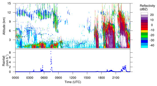 - Houze, R.A.; Rasmussen, K.L.; Zuluaga, M.D.; Brodzik, S.R. The variable nature of convection in the tropics and subtropics: A legacy of 16 years of the Tropical Rainfall Measuring Mission satellite. Rev. Geophys. 2015, 53, 994–1021. [Google Scholar] [CrossRef]