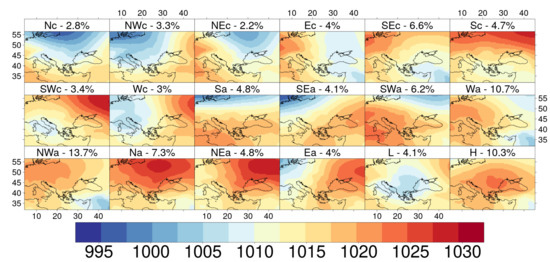 - Beck, C.; Jacobeit, J.; Jones, P.D. Frequency and within-type variations of large-scale circulation types and their effects on low-frequency climate variability in Central Europe since 1780. Int. J. Clim. 2007, 27, 473–491. [Google Scholar] [CrossRef]