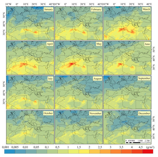 3.1. The Dust over the Mediterranean Region the from Forecast Model
