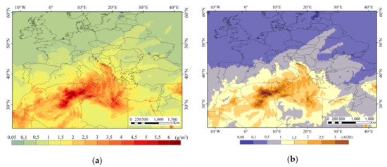 - Barcelona Dust Forecast Center. Available online: https://dust.aemet.es/ (accessed on 1 October 2019).