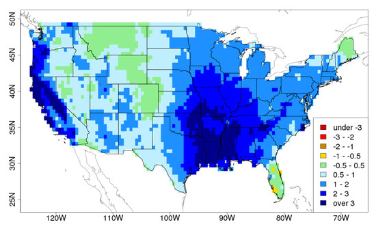 - Harris, I.; Jones, P.; Osborn, T.; Lister, D. Updated high-resolution grids of monthly climatic observations— The CRU TS3.10 Dataset. Int. J. Climatol. 2013, 34, 623–642. [Google Scholar] [CrossRef]