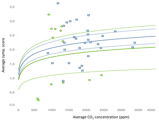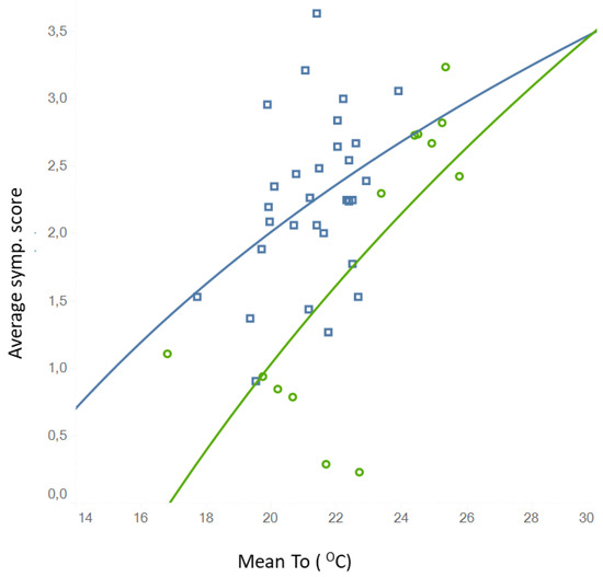 Thus, the analysis of the occupants’ symptoms and their environmental perception was identified as a potentially affordable complementary tool to obtain a more accurate indoor comfort condition assessment with a high degree of widespread applicability, together with the widely accepted rational (RTC) [23,47,48] or adaptive (ATC) [49,50] thermal comfort indicators, especially those analyzed in the Mediterranean area including educational buildings [51,52,53] or in non-air conditioned buildings in warm climates [54].