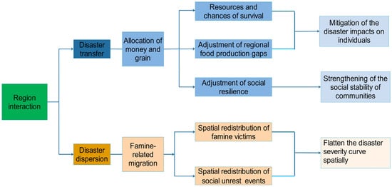 The presented case studies show that regional interaction has become an essential way of social response to historic extreme climate events. However, there is a lack of research on the characteristics, processes, and mechanisms of these regional interactions. Given the impact of extreme climate events and the social response could generate a complex multidirectional network in time and space [13], it is necessary to contribute to the research on the social response mechanism from the perspective of regional interaction.