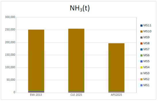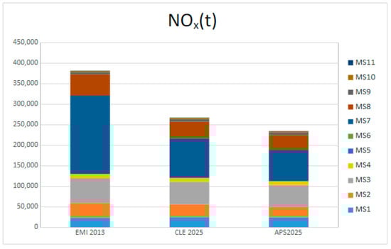 The emissions levels [] related to the main pollutants (NOx, PM10, NH3 and SO2), for the three following scenarios, are shown in Figure 2, Figure 3, Figure 4 and Figure 5: