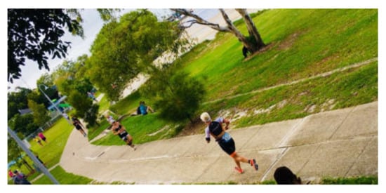 Exposures received when the sun is low in the sky during the early morning and late afternoon represent periods of minimal daily exposure risk. National cancer councils and advocacy groups recommend exposure avoidance, active use of shade, and personal sun-protection when the UVI reaches a moderate level [35]. Exposures received during periods of low UVI may not therefore require active sun-protection by triathlon competitors. One strategy that could be implemented to improve sun protection during periods of a triathlon when the greatest amount of solar UV radiation is present would involve active promotion of the use of physical sun protection during the cycle and run stage. Courses designed to make use of well shaded streets, parks and forests have the potential to limit the effective skyview and therefore provide greater opportunity to shade competitors (Figure 6). Here, a new metric, the RSE was introduced to measure the relative difference in exposure across each of the swim, cycle and run stages of a triathlon. Local shading experienced by a competitor as they move around a course will affect each triathlon event differently. Therefore, the RSE measured with respect to a static field dosimeter placed in an open environment measures the relative exposure of each triathlete only with respect to that location. Similarly, given the limited number of ARPANSA radiometers available, any given RSE exposure expressed with respect to a field dosimeter will not be exactly the same as the exposures provided by the radiometers. These radiometers do however give some idea of the influence of cloud cover and show that the UVI (and therefore exposure) can also fluctuate depending on the cloud conditions experienced during an event.