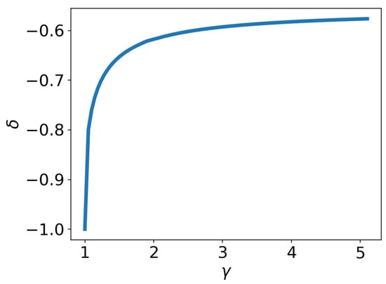 Thus, for every value of , we can obtain the corresponding value of . The relation between them is shown in Figure 3. These results are consistent with a previous work [25]. We note that, in the limit , we get , which corresponds to momentum conservation. However, in the limit , the solution does not converge to , which corresponds to energy conservation, but to a different value. This is discussed in more details in the next section.