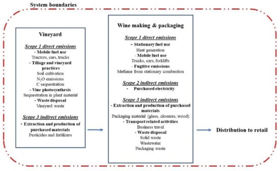 Accordingly, the aims of the research were: (1) To estimate for the first time the GHGE of a winery in Cyprus (at the organizational level), (2) To determine the CF of a bottle (0.75 L) of white wine produced from the indigenous Xynisteri variety, and (3) To get a rough estimate of the total GHGE from the winemaking sector in Cyprus using the studied winery as a model.