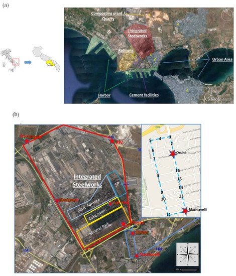 - Amodio, M.; de Gennaro, G.; Di Gilio, A.; Tutino, M. Monitoring of the deposition of PAHs and metals produced by a steel plant in Taranto (Italy). Adv. Meteorol. 2014, 2014, 598301. [Google Scholar] [CrossRef][Green Version]