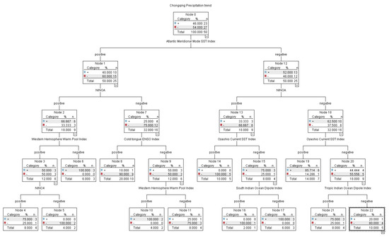 Relationship between precipitation trend in summer and SST index in pre-winter based on the CART algorithm in Chongqing.