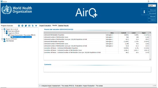 Screenshot of results generated by AirQ+.