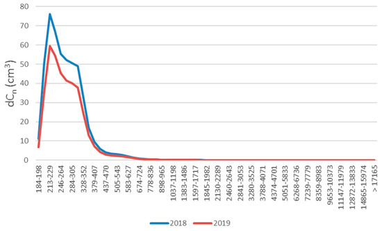 To see how the various years compare a comparison was made between the two complete years 2018 and 2019 Figure 6), in particular, the average number concentrations of the individual size fractions from the entire year were compared.