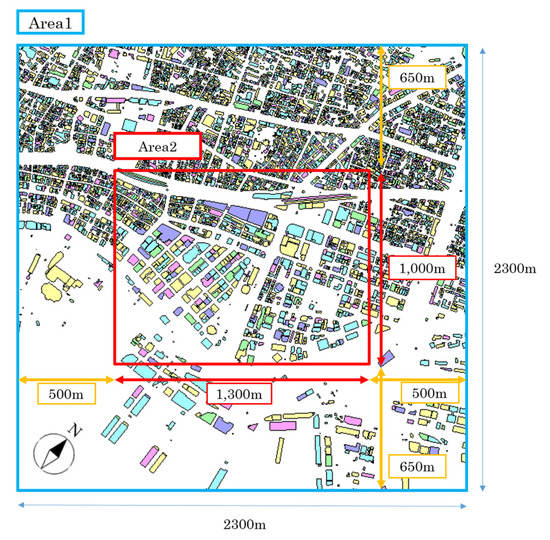 In order to mitigate the negative impact by the extreme high temperature, various strategies have been developed [11], such as solar radiation shade, urban ventilation, and mist spray, among others. The appropriate strategy should be applied depending on the characteristics of each location. It follows that the urban climate map is an effective tool for the identification of places that need intervention and, at the same time, for the evaluation of which adaptation technique should be applied at each location. Many useful examples of large cities such as Tokyo and Beijing, medium-sized cities such as Salvador and Berlin, and small cities such as Sendai and Stuttgart were presented in the book published by Ng and Ren [12]. They contributed to bridging the gap between the science of urban climatology and the practice of urban planning. Many of the existing studies analyze urban climate maps at urban scale and are focused on air temperature and wind distribution in the entire urban area [13]. Differently, in order to focus on the radiation and wind effects on pedestrians, the analyzed area is at a district scale. Spatial distribution of air temperature and humidity are a little for human thermal environment in a street canyon. Effects on wind and radiant environment due to building and urban block characteristics should be clarified in order to produce reliable urban climate maps at district scale [3]. In this study, the thermal environment map in street canyon is derived by using GIS building data and more detailed calculation, and its effectiveness is considered for implementing extreme high temperature measures. The purpose of this study is to derive a strategy of extreme high temperature measures based on the thermal environment map in street canyon. The scale targeted in this study is smaller than the scale generally discussed as the local climate zone [14].