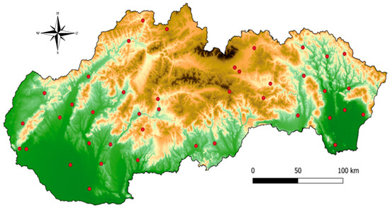 Network of meteorological stations in Slovakia.