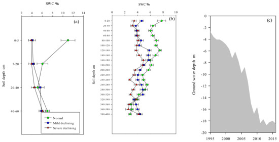 3.4. Variations of Soil Water Content and Groundwater Depth