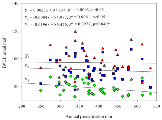- Weiwei, L.; Xinxiao, Y.; Guodong, J.; Hanzhi, L.; Ziqiang, L. Responses of Intrinsic Water-use Efficiency and Tree Growth to Climate Change in Semi-Arid Areas of North China. Sci. Rep. 2018, 8, 308. [Google Scholar]