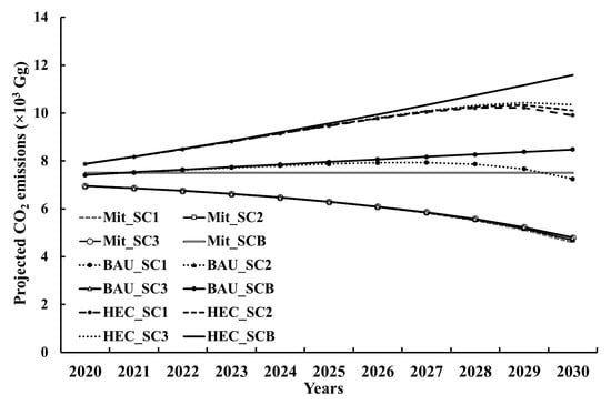 3.2.2. Projected CO2 Emissions for Business as Usual Case