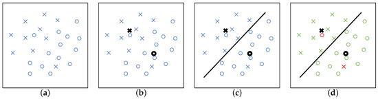 - Finally, once all data points are assigned to one of the two groups, the number of well-classified points is calculated (Figure 5d). The FCC is the rate of well-classified data points. In Figure 5d, well-classified points are green and wrongly classified points are red. It should be noted that for the calculation of the FCC, here we use a supervised method (with known label), although the original K-mean is unsupervised.