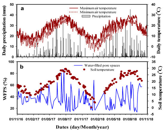 - Wang, W.J.; Dalal, R.C.; Reeves, S.H.; Butterbach-Bahl, K.; Kiese, R. Greenhouse gas fluxes from an Australian subtropical cropland under long-term contrasting management regimes. Glob. Chang. Biol. 2011, 17, 3089–3101. [Google Scholar] [CrossRef]