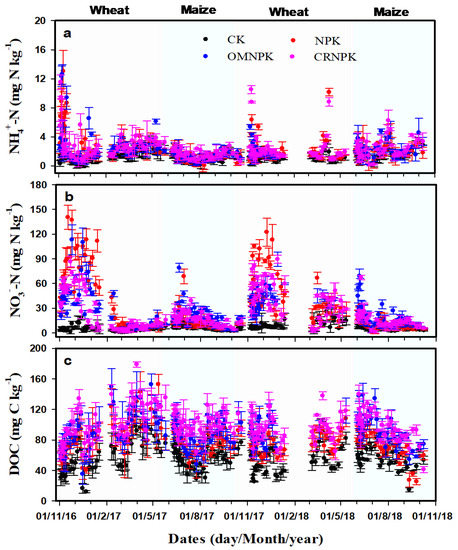 - Wang, J.; Zhu, B.; Zhang, J.; Müller, C.; Cai, Z. Mechanisms of soil N dynamics following long-term application of organic fertilizers to subtropical rain-fed purple soil in China. Soil Biol. Biochem. 2015, 91, 222–231. [Google Scholar] [CrossRef]