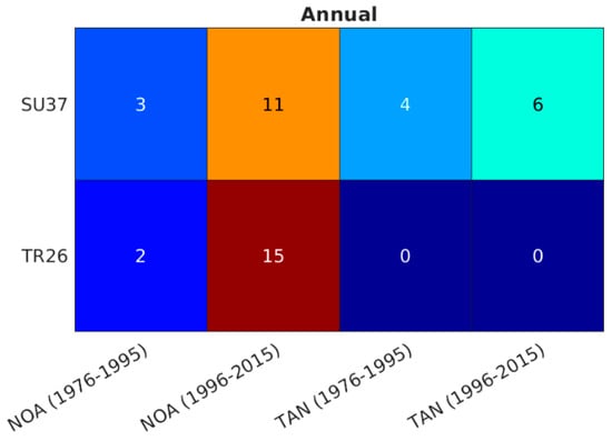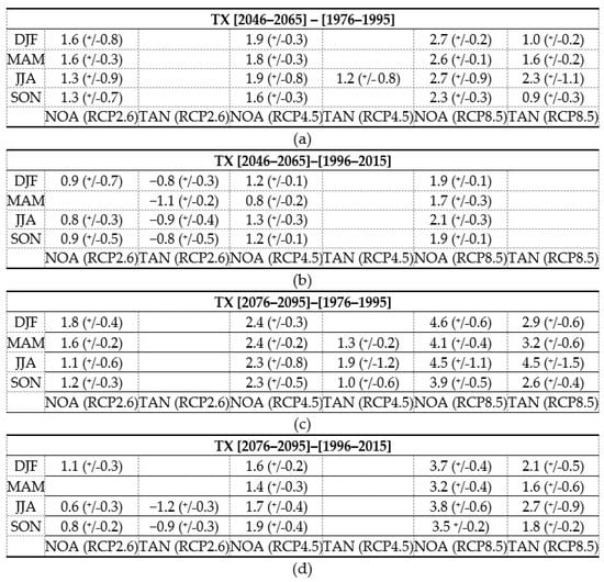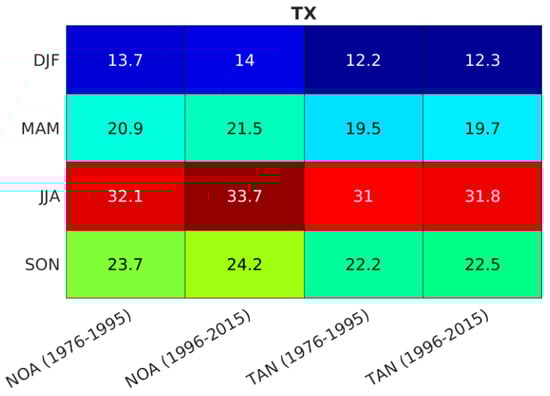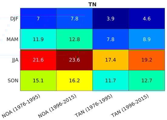 | ΔTmax (1976–1995) | ΔTmax (1996–2015) | ΔTmin (1976–1995) | ΔTmin (1996–2015) | |