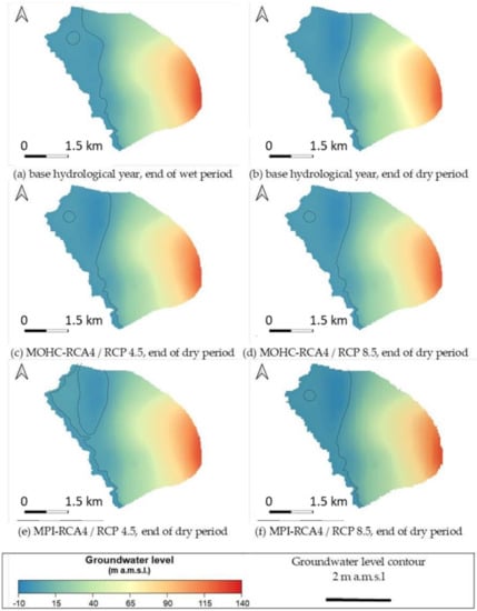 3.2. Εstimation of Future Groundwater Resources Availability under Climate Change Conditions