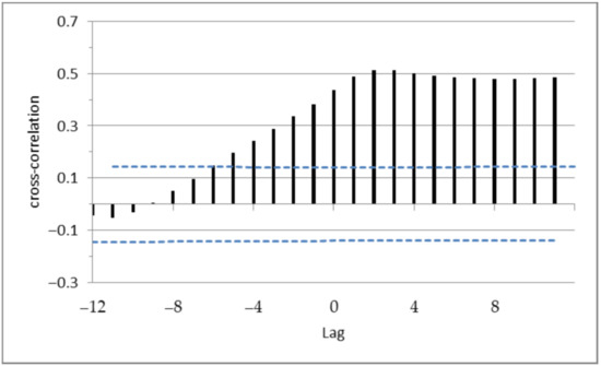 Additionally, in order to ensure that the SPEI can be correlated with reservoir storages [49], also in the case of Cyprus, the cross correlation function was used to determine whether there is a relationship between the estimated SPEI values and the measured water volumes stored in the dams of interest. As adequate water volume measurements were available only for the Asprokremmos and Kouris dams, the correlation was explored only for the cases of these two dams, for the period 1988–2004. To determine whether a significant relationship exists between the two data series (SPEI and storage), the absolute correlation value should be greater than where n is the number of observations and k is the time lag.