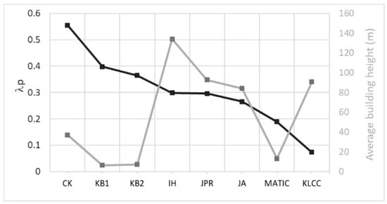 Average λp and building heights for the monitoring locations within 200 m distance.