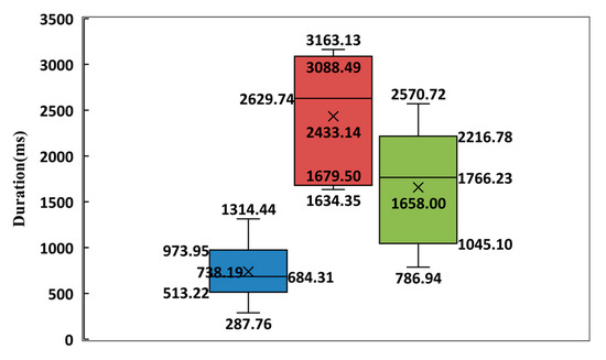Statistical graph of the duration of the initial stage. The blue part corresponds to the single initial process form, the red part corresponds to the multiple initial process form and the green part corresponds to first initial process in the multiple initial process form.