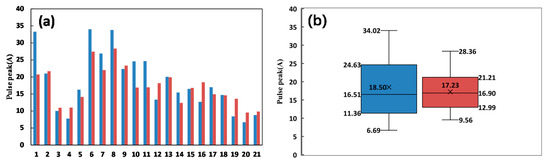 Figure 9 shows the average pulse peaks for IPCPs and their closest PCP clusters. There were no consistent differences among the average pulse peaks of the 21 cases (see Figure 9a). The overall statistical results in Figure 9b show that the average pulse peaks of the PCP clusters were very close to that of the IPCPs, with a similar median and average.