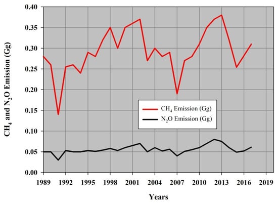 Emission of GHGs: Emissions of CH4 and N2O in the unit of Gg.