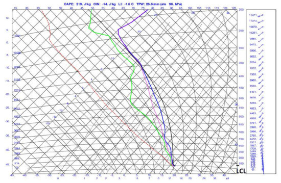 - Dupilka, M.L.; Reuter, G.W. Composite soundings associated with severe and tornadic thunderstorms in Central Alberta. Atmos. Ocean 2011, 49, 269–278. [Google Scholar] [CrossRef]