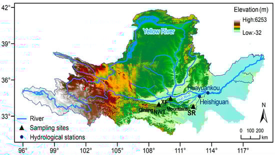 Map showing the locations of sampling sites and hydrological stations in the middle reaches of the Yellow River.