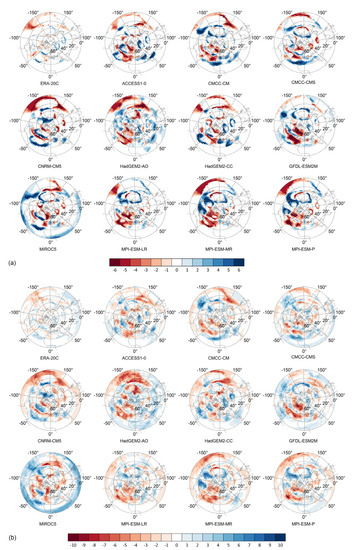 As the reanalyses show significant differences in the above-mentioned regions in the NH, the similarity between some GCMs and the given reanalysis was higher than the similarity between the two reanalyses, which was never observable during the analysis of the stability patterns in Section 3.2.