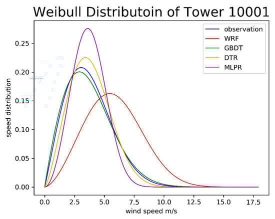 In this paper, the Weather Research and Forecast (WRF) model was used for numerical weather prediction in wind farm areas. The gradient boosting decision tree (GBDT) method was used to perform the post-processing task and output the post-processed wind speed results. Two additional machine learning models were used for comparison. By comparing the RMSE of the WRF model’s wind speed output with the RMSE of the post-processing models’ wind speed output, we evaluate the performance of GBDT as a post-processing method. Section 2 mainly introduces the WRF model, observation data, and GBDT algorithm. Section 3 analyzes the results of GBDT and its feature importance distribution. Section 4 presents our main conclusions.