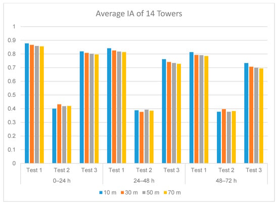 Index of agreement (IA) is a standardized measure of the degree of model prediction error [46,47,48]. It can be calculated by