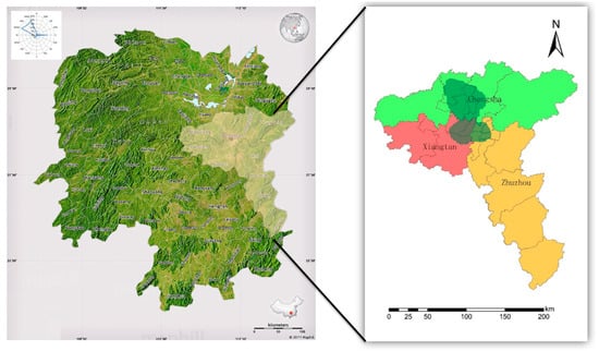 The CZT urban agglomeration lies in the central-eastern part of Hunan Province, consisting of Changsha, Zhuzhou, and Xiangtan. It is located at 111°53′ E–114°15′ E and 26°03′ N–28°41′ N (see Figure 1). Owing to its central position in South China, this region is not only worked as a transportation junction but also regarded as an engine of Central China. The terrain is low in the northwest and high in the southeast. Additionally, this region is surrounded by mountains on three sides. Hence, this region is prone to suffering from heavy air pollution during a pollution episode.
