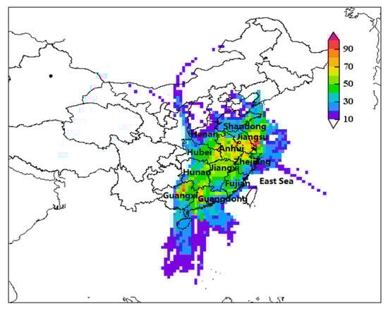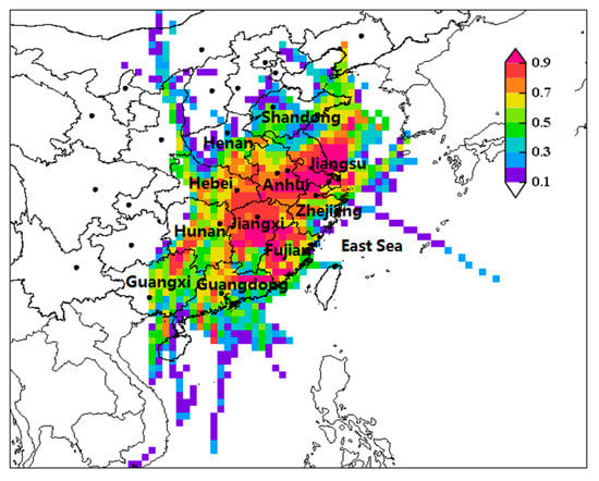 The larger Cij value indicates that the air mass passing through the grid i × j will cause a higher concentration of pollutants in the target area. The area corresponding to the grid is the main outer source area that contributes to the high-concentration pollutants in the target area. The trajectory through the grid is the main transmission path that contributes to the pollutants. As the main potential contributing area in CZT urban agglomeration, northern areas such as Jiangsu, southern Hubei, and northwestern Jiangxi appear higher value. Besides, the southern regions such as southern Guangdong and southern Guangxi present high contribution rates, which cannot be ignored.