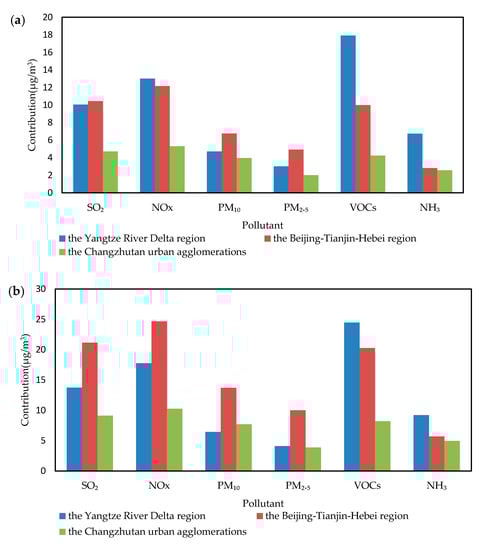 - The comparison of this inventory of the YRD region and the BTH region presage that the emissions of six major pollutants in CZT urban agglomeration need to be taken seriously in the next decade. The concentration of PM and NH3 in CZT urban agglomeration is not much different from that in the YRD region and the BTH region.