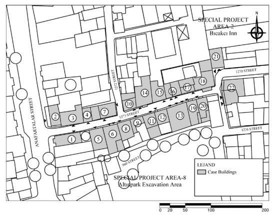 Numbered case buildings in 1273 Street. Source: modified from the drawings of Konak Municipality.