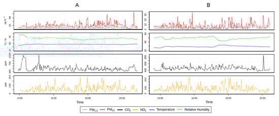 There is significant interest in using low-cost sensors to characterize personal exposure by measuring pollution concentrations in micro-environments in which people spend time, such as the workplace, at home and in various means of transport used during commuting [19]. Combining the different pollution sensors into a node (with signal processing and communication, as well as data storage and analysis) forms a useful tool to assess air quality. These sensor nodes are typically characterized by their small size and weight, relatively short response time and low power requirements [20,21,22]. Low-cost sensors have developed rapidly in recent years and are changing the paradigm of air pollution monitoring beyond the geographically restricted roadside and background monitoring accomplished by dedicated stations. The high time resolution of the components, combined with the large data throughput and the high spatial resolution made possible by multiple installations, allows researchers to achieve a more comprehensive understanding of an individual’s true exposure [20,23,24]. While low-cost sensors are not yet likely to substitute accredited routine monitoring instruments at fixed-site monitoring stations for the accurate measurements of well-mixed gases in the atmosphere, they are particularly useful for measurements of short-lived pollutants with sources located inside cities. Thus, they can supplement the conventional monitoring station networks and increase the spatio-temporal resolution of measurements [15,25]. In addition, their small size enables the monitoring of personal exposure; for example, at home, at work and during transit [26].
