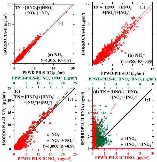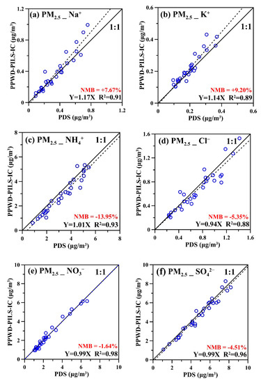 - Nie, W.; Wang, T.; Gao, X.; Pathak, R.K.; Wang, X.; Gao, R.; Zhang, Q.; Yang, L.; Wang, W. Comparison among filter-based, impactor-based and continuous techniques for measuring atmospheric fine sulfate and nitrate. Atmos. Environ. 2010, 44, 4396–4403. [Google Scholar] [CrossRef]
