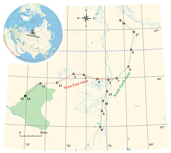 Map of integrated snow sampling in the Arctic part of Western Siberia.