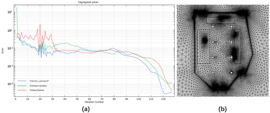 (a) Convergence plot for a typical simulation process; (b) computational grid.