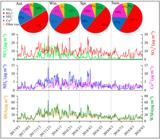 | WSIs (μg m−3) | 17.92 ± 10.79 | 26.26 ± 10.94 | 18.61 ± 8.34 | 11.19 ± 4.98 | 18.52 ± 10.51 |