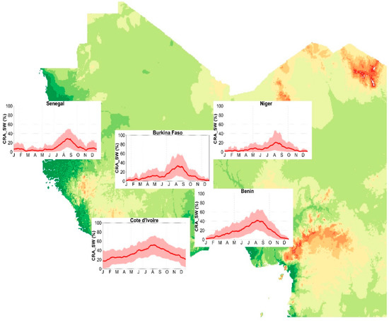 - Danso, D.K.; Anquetin, S.; Diedhiou, A.; Kouadio, K.; Kobéa, A.T. Daytime Low-Level Clouds in West Africa—Occurrence, Associated Drivers and Shortwave Radiation Attenuation. Earth Syst. Dynam. Discuss. 2020. in review. [Google Scholar] [CrossRef]